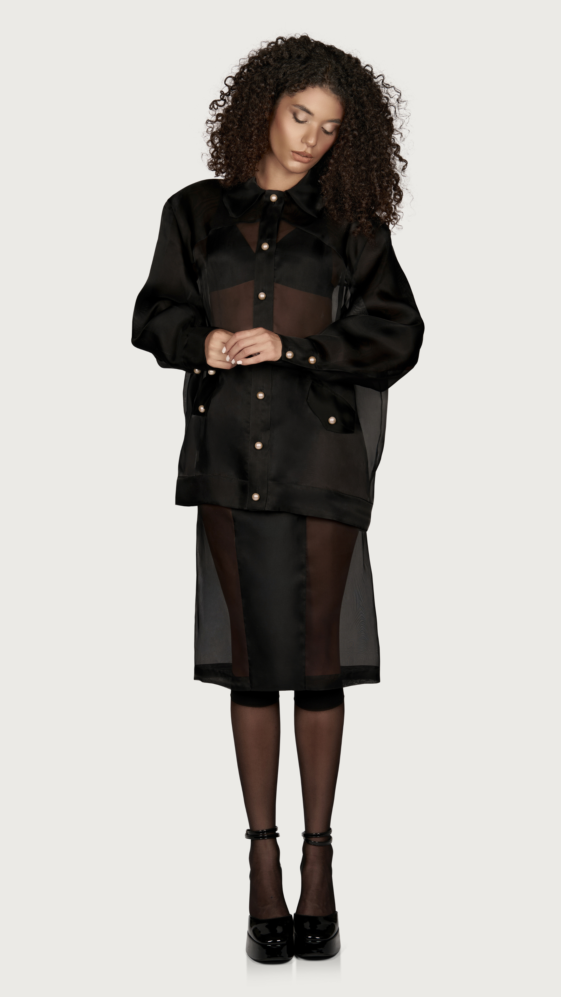 Discover a collection where floral lace, wool, and stretch satin are brought together in a study of balance and contrast. Light and delicate fabrics meet grounded textures, creating pieces that feel both refined and adaptable.
