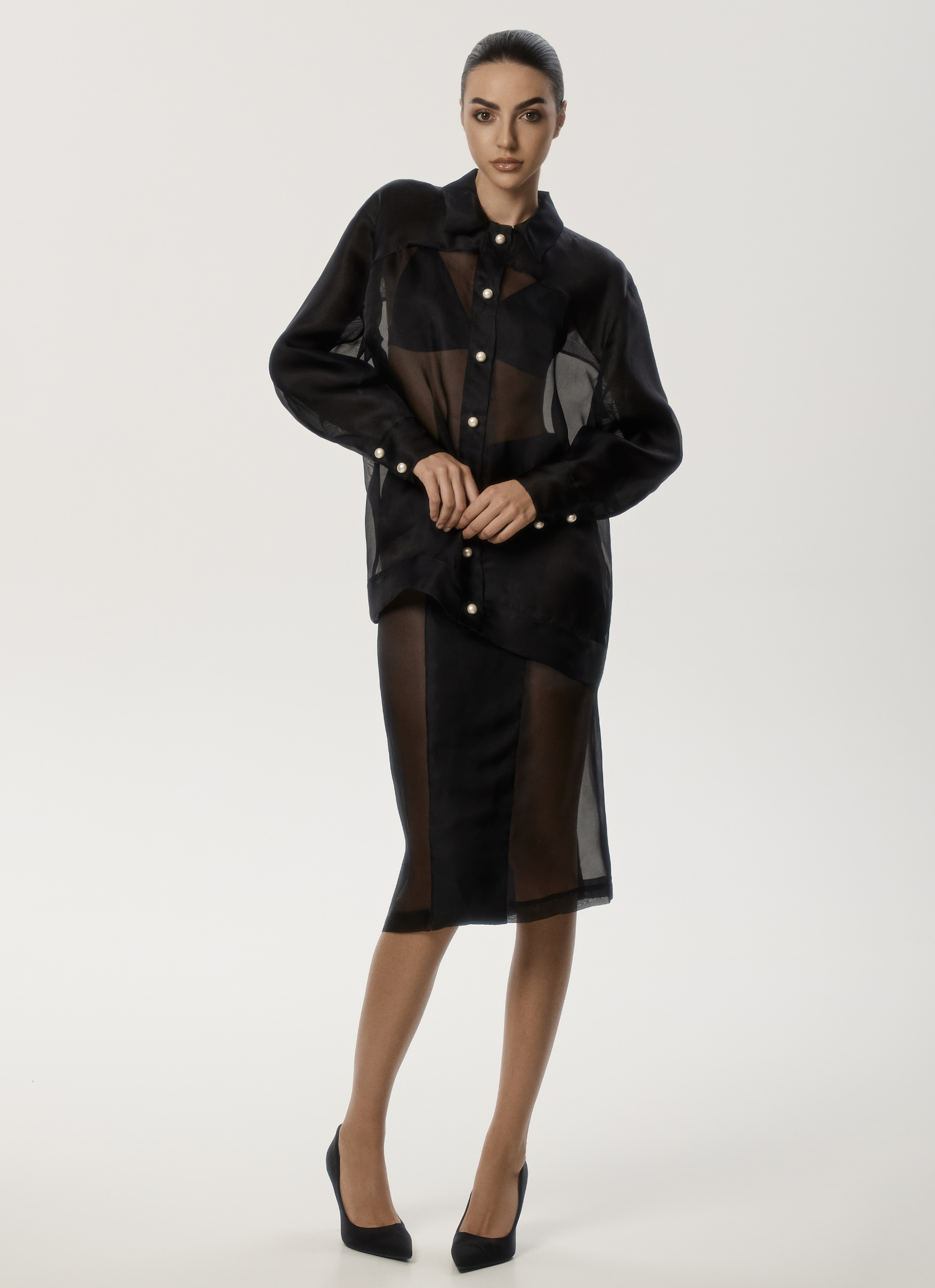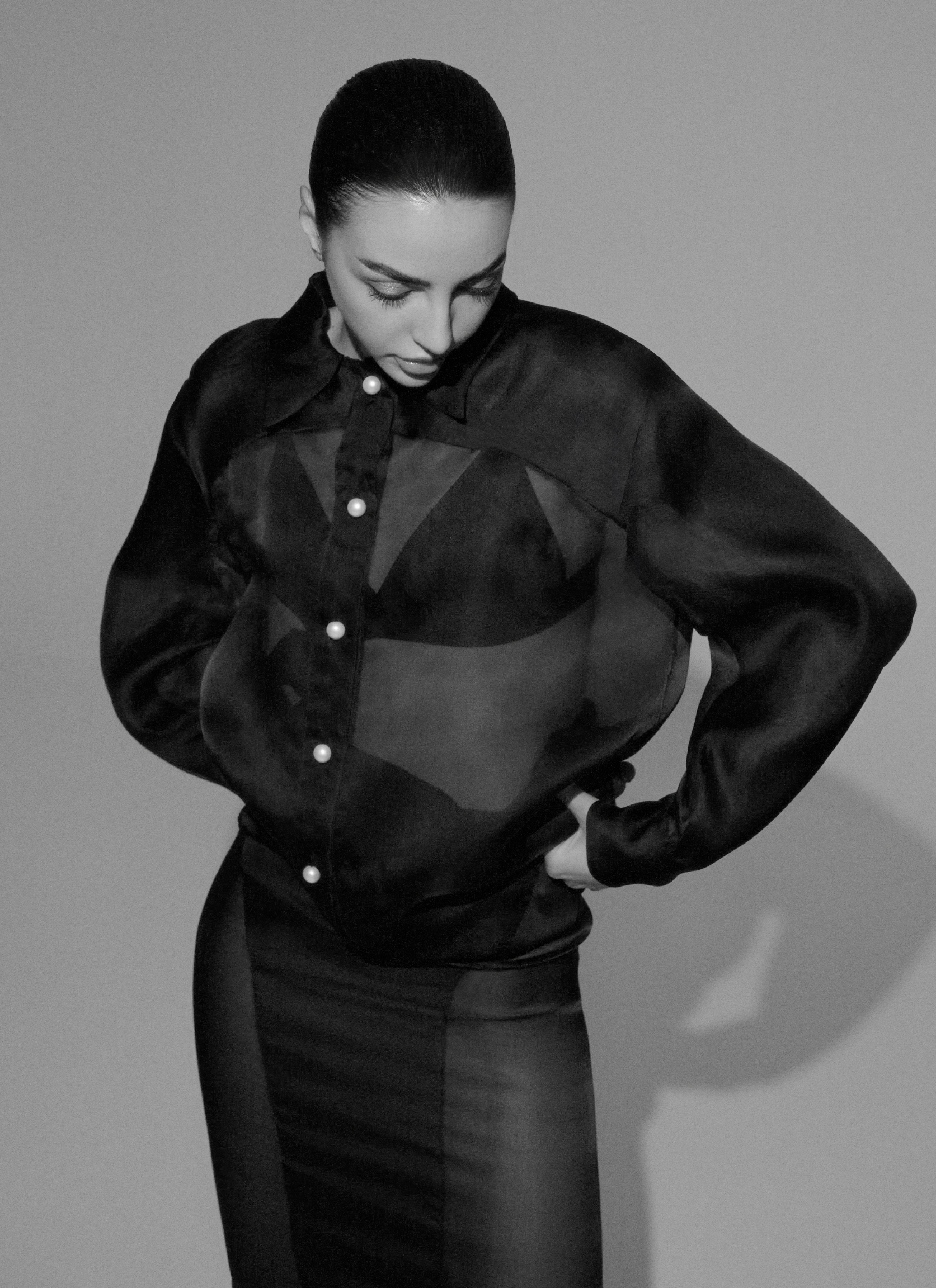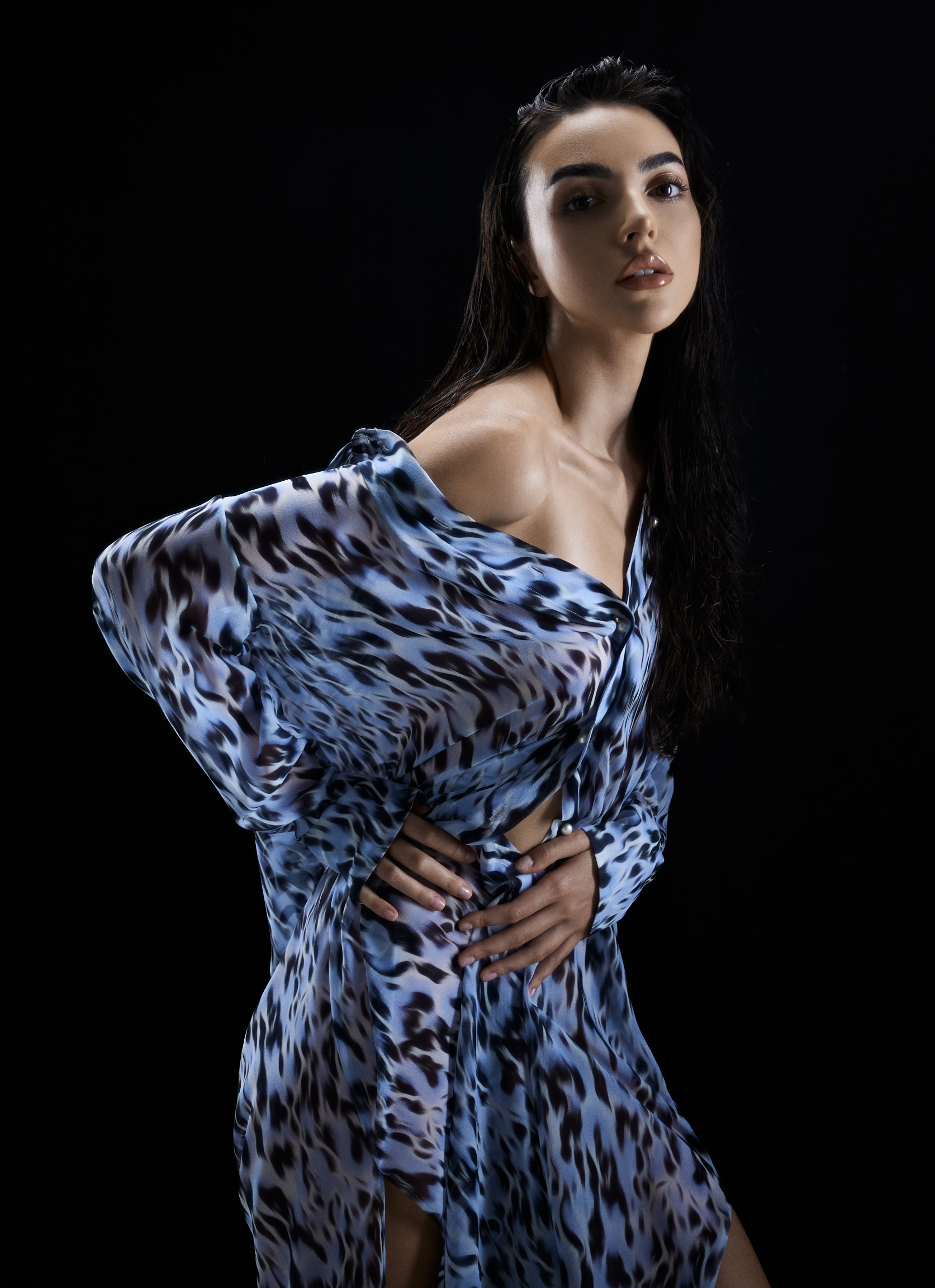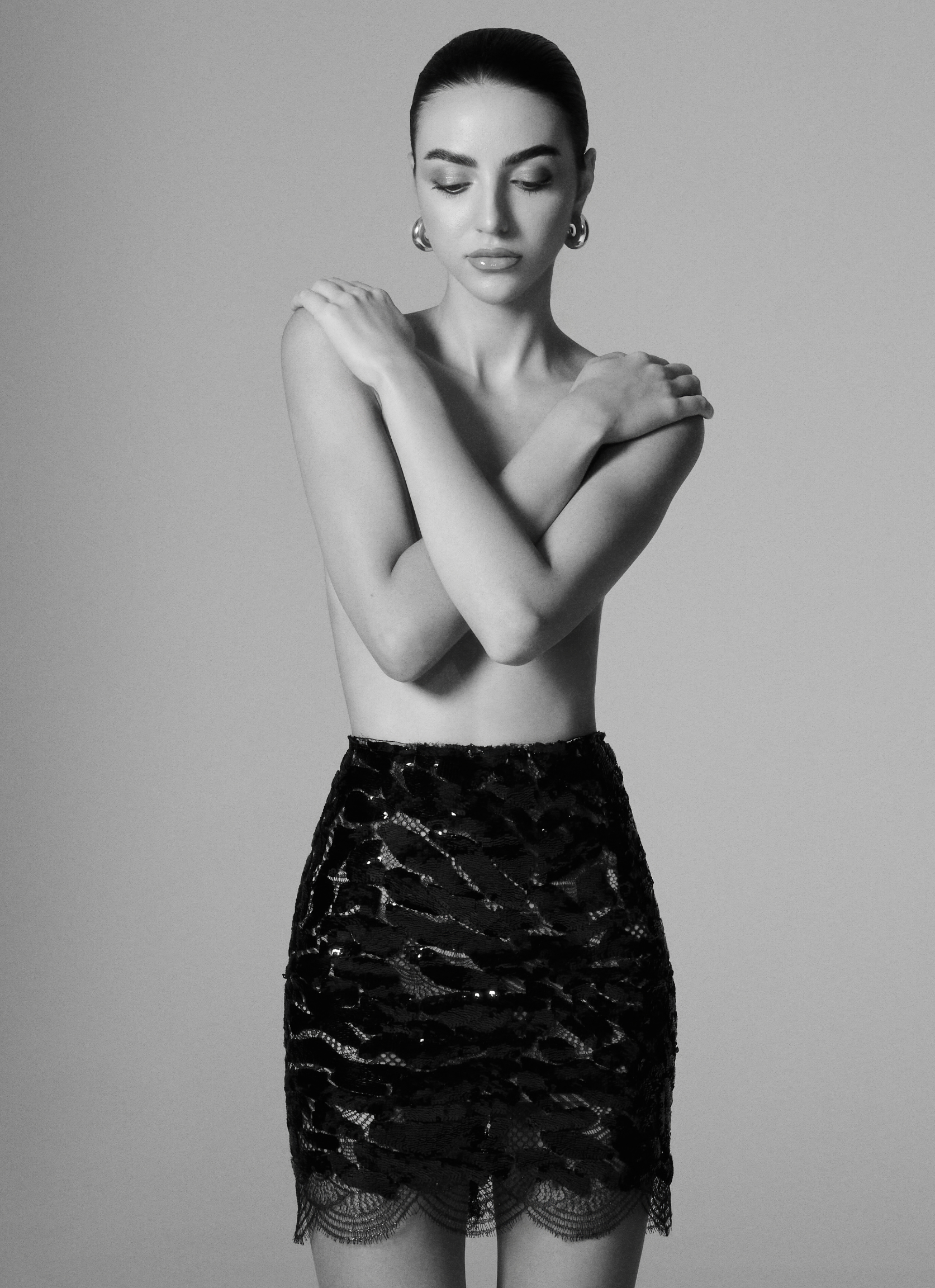 Discover a collection where mysterious black pieces are enhanced by sinuous cuts and intimate accessories, offering a delicate yet sexy allure through flowy textures and intricate transparencies. Skin-tight silhouettes crafted from soft, body-hugging fabrics invite bold self-expression, while textured surfaces and lace, inspired by the animal world, whisper sensuality. Painterly prints featuring imaginary skins blur the line between fantasy and reality, evoking a playful, free spirit that celebrates individuality and invites adventure throughout the collection.